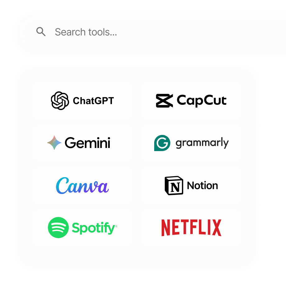 Langganan tools kerja, AI, desain, atau platform digital yang mendukung produktivitas harian maupun bisnis.